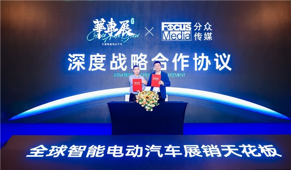 發(fā)布會(huì)現(xiàn)場(chǎng),還進(jìn)行了CAS華車展與分眾傳媒深度戰(zhàn)略合作簽約儀式,華墨集團(tuán)CEO王國(guó)平與分眾傳媒董事長(zhǎng)江南春共同簽署了“助力全球智能電動(dòng)汽車品銷雙贏”戰(zhàn)略合作。