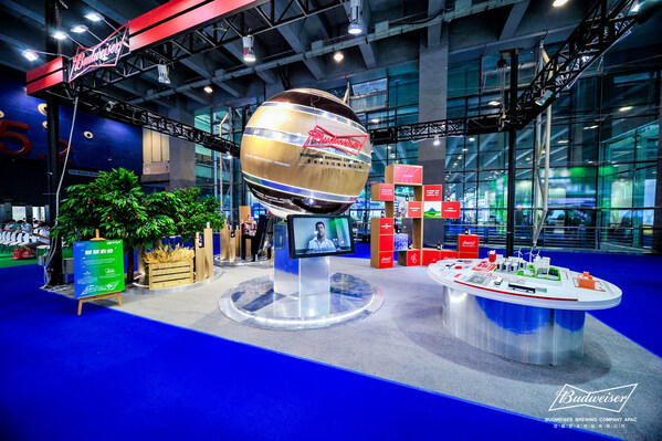 百威作為可持續(xù)發(fā)展的先行者,本次展臺遵循綠色低碳的設(shè)計理念,采用更具可持續(xù)性的材料分展區(qū)展示百威在ESG策略、綠色生產(chǎn)和綠色物流、水資源管理、智慧農(nóng)業(yè)、循環(huán)包裝等方面的豐碩成果。其中地球形狀的循環(huán)裝置采用了由百威啤酒糟回收制作而成的植物基皮革、環(huán)保紙等可回收再生的包裝材料,整體布局風(fēng)格充分體現(xiàn)了"綠動未來"的參展主題特色。一直以來,百威將可持續(xù)發(fā)展理念貫穿業(yè)務(wù)始終,憑借極具前瞻性的戰(zhàn)略目標(biāo),配合強(qiáng)大的本土執(zhí)行能力,在本屆盛會交出了一份亮眼的綠色發(fā)展"成績單",吸引眾多嘉賓觀眾駐足參觀交流。
