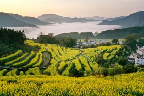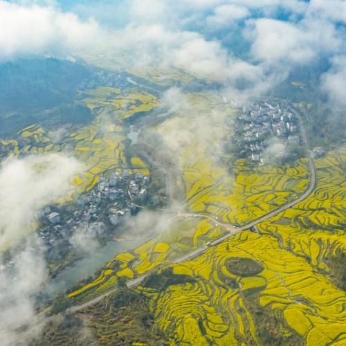 進(jìn)入三月中旬以來,江西婺源的十萬多畝油菜花競(jìng)相開放,正式進(jìn)入了盛花期。迷人花海遍布每個(gè)村莊,風(fēng)姿灼灼,景色迷人。在“中國(guó)四大花海”之一的江嶺景區(qū),漫山遍野的油菜花隨著梯田彎曲的線條蜿蜒至遠(yuǎn)方,猶如金蛇舞動(dòng),蔚為壯觀。在李坑、思溪延村等景區(qū)油菜花盛開于徽派建筑之間,與小橋、流水、人家構(gòu)成了一幅娟秀柔美的江南春景圖,引來了天南地北的游客賞花潮。