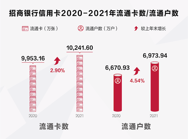 據(jù)財(cái)報(bào),截至2021年底,招行信用卡流通卡量10241.6萬張,較上年末增長2.9%,首次突破1億張;流通戶數(shù)6973.94萬戶,較上年末增長4.54%。招行信用卡流通卡量、流通戶數(shù)在高位穩(wěn)步增長,與其從客戶視角出發(fā)推動(dòng)產(chǎn)品升級,完善豐富的產(chǎn)品矩陣不無關(guān)系。