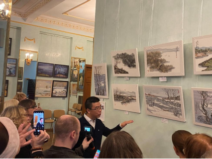 日前,由中俄人文合作發(fā)展中心和俄羅斯國家科學(xué)院文化藝術(shù)中心聯(lián)合主辦的“思考自然之美——劉子輿作品展”,正在莫斯科俄羅斯國家科學(xué)院文化藝術(shù)中心舉行,展期截止到4月5日。中國畫家劉子輿,受邀走進(jìn)俄羅斯國家科學(xué)院“大師課堂”講授中國繪畫。據(jù)悉,本次展覽展出的是劉子輿近期創(chuàng)作的作品,即用中國水墨描繪了莫斯科的雪景、森林以及蜀葵、棉花、蒲公英、土豆、地黃等花卉。據(jù)悉,俄羅斯觀眾見到這些精彩的中國水墨作品,驚嘆不已,紛紛拍照留念。