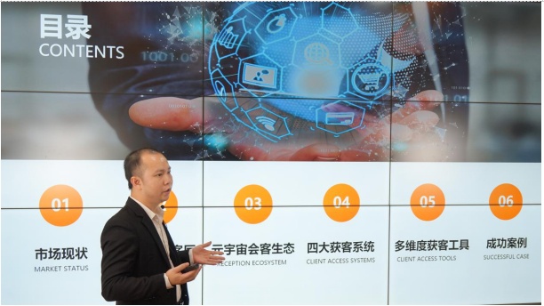 關(guān)于云展動力及鴻威元宇宙會客廳,鴻威集團(tuán)云展動力負(fù)責(zé)人陳良玉介紹道,云展動力精準(zhǔn)獲客平臺歷經(jīng)多年打磨,現(xiàn)已集合了數(shù)字孿生云展系統(tǒng)、大數(shù)據(jù)獲客系統(tǒng)、精準(zhǔn)邀約系統(tǒng)、客戶管理系統(tǒng),形成了有效的智能獲客生態(tài)。針對“幫助企業(yè)獲客”的核心問題,云展動力重磅推出了元宇宙會客廳,能夠完美復(fù)刻企業(yè)實景,讓精準(zhǔn)客戶不受時空限制,隨時隨地進(jìn)入云展廳參觀,完成逛展會、看產(chǎn)品、游產(chǎn)線等實時互動操作,助力參展企業(yè)實現(xiàn)高效獲客,為國際采購商尋求優(yōu)質(zhì)供應(yīng)服務(wù)商創(chuàng)造條件。