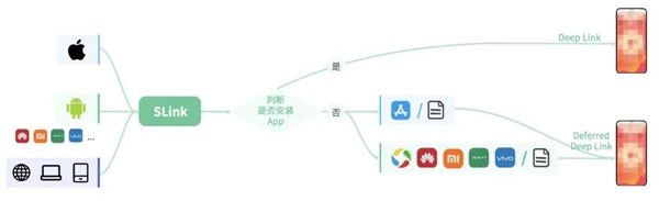值得強(qiáng)調(diào)的是,SLink為企業(yè)的拉新場(chǎng)景提供了專屬的延遲深度鏈接(DeferredDeepLink)功能。有了延遲深度鏈接,新用戶可在下載App并打開后繞開App首頁(yè)等內(nèi)容,直接跳轉(zhuǎn)至App內(nèi)活動(dòng)頁(yè)面,第一眼就看到吸引自己下載App的內(nèi)容,從而減少新用戶流失。另外,基于此功能,廣告主也不必再擔(dān)心新用戶體驗(yàn)中斷。具體表現(xiàn)為: