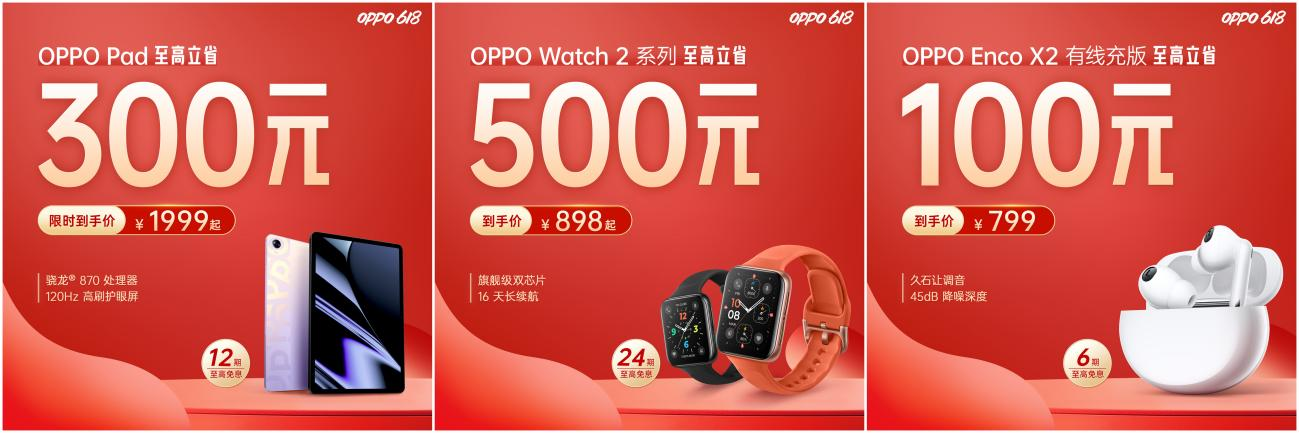 對(duì)于想要組建OPPO全家桶的用戶來說,此次OPPO 618活動(dòng)入手IoT產(chǎn)品也是不錯(cuò)的選擇。其中OPPO Pad至高立省200元,到手價(jià)僅需1999元起;長(zhǎng)續(xù)航雙芯智能手表OPPO Watch 2系列至高立省500,到手價(jià)僅為898元起;旗艦級(jí)無線降噪耳機(jī)OPPO Enco X2有線充版也享有799元的到手價(jià)福利。