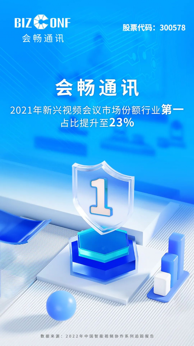 近日,沙利文頭豹研究院發(fā)布了《2022年中國智能視頻協(xié)作系列追蹤報告》。報告顯示,疫情加速企業(yè)級視頻會議協(xié)作市場擴展進(jìn)程,從大規(guī)模普及階段來到了需要提升體驗感的下一站,預(yù)計到2026年市場規(guī)模將超百億。會暢通訊憑借全產(chǎn)業(yè)鏈布局、國產(chǎn)音視頻+3D雙引擎驅(qū)動、一站式解決方案能力,在2021年云視頻會議市場份額占比提升至23%,在云視頻業(yè)務(wù)營收持續(xù)行業(yè)領(lǐng)跑后,穩(wěn)居中國云視頻會議市場份額占有率榜首。