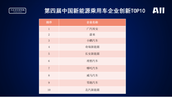 中國(guó)新能源乘用車(chē)企業(yè)創(chuàng)新TOP10