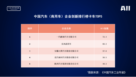 中國(guó)汽車(chē)(商用車(chē))企業(yè)創(chuàng)新排行榜卡車(chē)TOP5
