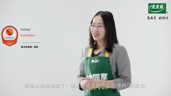 產(chǎn)品經(jīng)理Grace:太太樂(lè)作為中國(guó)雞精品類(lèi)的領(lǐng)“鮮“者,其創(chuàng)立之初就自帶創(chuàng)新的基因。34年后的今天,太太樂(lè)正在開(kāi)發(fā)更多滿足消費(fèi)者需求的新產(chǎn)品,我也有幸成為了其中的參與者。在工作中創(chuàng)造不同的同時(shí),得益于定制化的職業(yè)發(fā)展路徑,我成功從一名管培生蛻變成了獨(dú)當(dāng)一面的產(chǎn)品經(jīng)理,獨(dú)立負(fù)責(zé)一個(gè)產(chǎn)品系列和領(lǐng)導(dǎo)一支團(tuán)隊(duì)。作為這種鼓勵(lì)創(chuàng)新、擁抱人才的文化的受益者,我也會(huì)在接下來(lái)的團(tuán)隊(duì)管理中支持晚輩的新點(diǎn)子,為他們提供職業(yè)發(fā)展指導(dǎo),助力他們成為更好的自己。