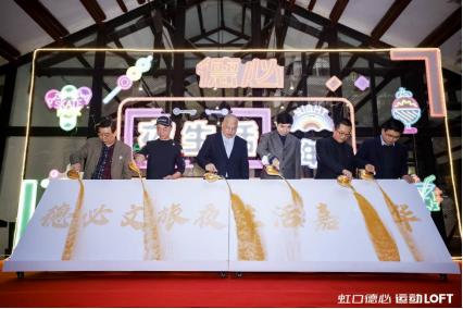 活動(dòng)最后舉辦了虹口德必文旅夜生活嘉年華開幕式,強(qiáng)熒、汪建強(qiáng)、任義彪、朱琪、賈波、袁峰登臺(tái),手持金沙,正式啟動(dòng)了海韻潮虹·德必文旅夜生活嘉年華。