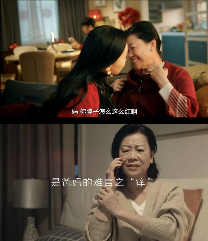 就像視頻中爸媽的皮膚瘙癢問題,一方面父母會(huì)以為是小問題或個(gè)人隱私,另一方面又不想兒女擔(dān)心,從而選擇默默忍受瘙癢的困擾,明明已經(jīng)影響生活,卻難言之“癢”、報(bào)喜不報(bào)憂。