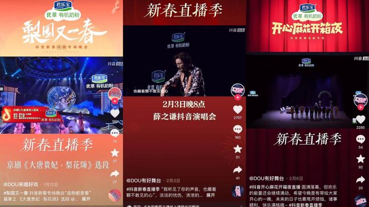 同樣是在今年CNY活動期間,優(yōu)萃有機(jī)奶粉合作了《梨園又一春》、《薛之謙演唱會》、《開心麻花開箱夜》等自帶關(guān)注度、話題性和高熱曝光的直播項目,這其中涵蓋戲曲、音樂、小品等多類型,滿足了不同圈層受眾的內(nèi)容需求。無論是別致氣韻的戲曲盛宴、讓人捧腹的喜劇專場還是高品質(zhì)音樂沉浸表演,都將春節(jié)氛圍拉至高潮,而借勢節(jié)目本身的影響力和傳播力,優(yōu)萃有機(jī)奶粉在收獲不俗流量的同時,再一次將“讓小寶寶先吃上有機(jī)食品”的品牌信息進(jìn)行了生動植入。