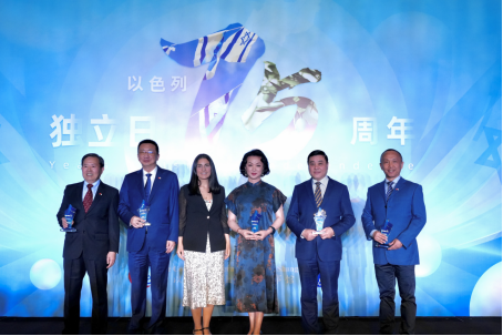 活動現(xiàn)場,上海兒童醫(yī)學中心SDR手術中心主任肖波獲得“促進中以醫(yī)療技術交流”杰出貢獻獎,上海猶太難民紀念館館長陳儉獲得“致力于上海猶太歷史保護”杰出貢獻獎,上海金星舞蹈團藝術總監(jiān)金星獲得“促進中以藝術文化交流”杰出貢獻獎,上海鉆石交易所總裁林強獲得“促進中以商貿(mào)與文化交流”杰出貢獻獎,南京大學猶太文化研究所所長徐新獲得“致力于猶太文化研究與中以教育交流”杰出貢獻獎,白樂濰為獲獎嘉賓頒獎。這也是以色列總領事館建館以來,首次向中國人授予此榮譽。