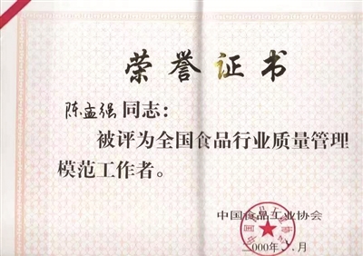 1987年,陳孟強(qiáng)參與起草了《保國(guó)際金牌奪國(guó)際金獎(jiǎng)》的專題報(bào)告,并在全國(guó)輕工行業(yè)工作會(huì)議上進(jìn)行了匯報(bào)。