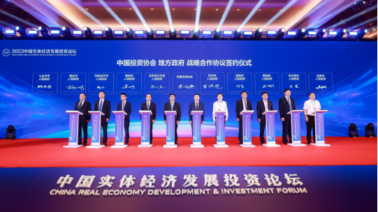 在簽約儀式環(huán)節(jié),中國投資協(xié)會和11個地方政府、10家上市公司及行業(yè)協(xié)會、10家金融機構、10家項目合作單位簽署了戰(zhàn)略合作協(xié)議。