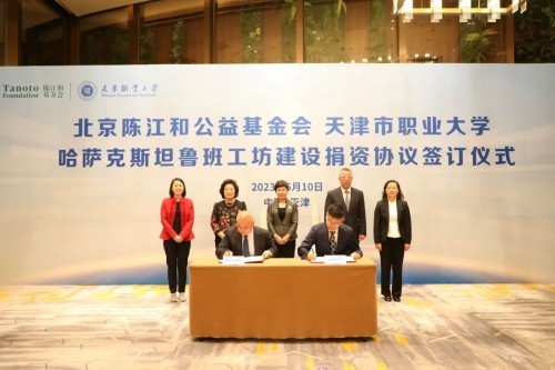 5月10日,北京陳江和公益基金會支持天津市職業(yè)大學(xué)魯班工坊簽約儀式在天津舉行。該捐贈主要用于資助即將在中亞國家哈薩克斯坦開展的、“一帶一路”相關(guān)項(xiàng)目——魯班工坊的建設(shè)。