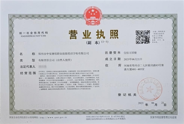 鄭州市中安建培職業(yè)技能培訓(xùn)學(xué)校由河南中安全資控股,屬營利性民辦職業(yè)技能培訓(xùn)機構(gòu)。河南中安作為鄭州市二七區(qū)招商引資重點項目和河南省“三個一批”活動簽約重點項目,在招商引資之初已確立了專注職教領(lǐng)域的職業(yè)資格證書考試培訓(xùn)和企業(yè)專業(yè)人才培養(yǎng)的發(fā)展路徑,致力于助力用戶實現(xiàn)職業(yè)夢想,幫助企業(yè)提高員工專業(yè)素養(yǎng)。