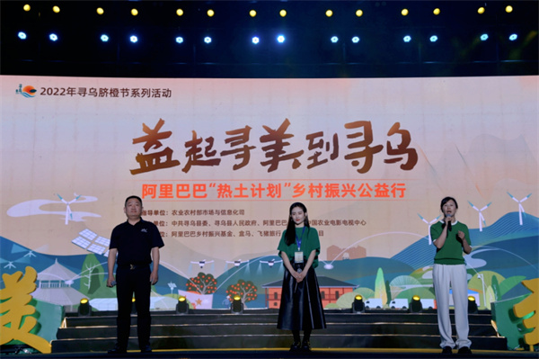 客家韻、紅土風、東江源、橘鄉(xiāng)情,尋烏不尋常!11月21日晚,2022年尋烏臍橙節(jié)系列活動之阿里巴巴“熱土計劃”鄉(xiāng)村振興公益行—益起尋美到尋烏系列活動,在江西省尋烏縣客家小鎮(zhèn)音樂噴泉廣場盛大舉行。本次活動由農業(yè)農村部市場與信息化司指導,中共尋烏縣委、尋烏縣人民政府、阿里巴巴公益、中國農業(yè)電影電視中心主辦;阿里巴巴鄉(xiāng)村振興基金、盒馬、飛豬旅行、《鄉(xiāng)約》欄目共同承辦。