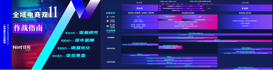 Nint任拓首次發(fā)布《雙11全域電商增長作戰(zhàn)圖》,從大促籌備期、大促期到復(fù)盤期三大階段出發(fā),梳理了品牌商家核心運(yùn)營策略,為品牌商家提供明確的行動(dòng)指南。