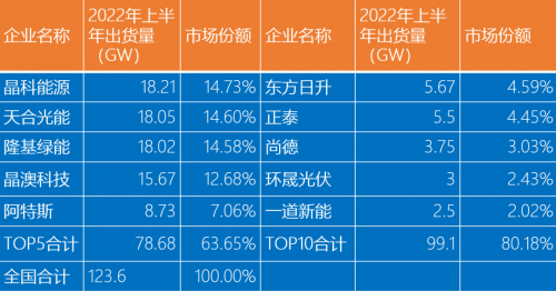 今年上半年,全國組件出貨量為123.6GW,前五大組件企業(yè)出貨量占比為63.65%,前十大組件占比80.18%。這些正在提高一體化程度的組件企業(yè)也決定著對上游電池片的采購量。