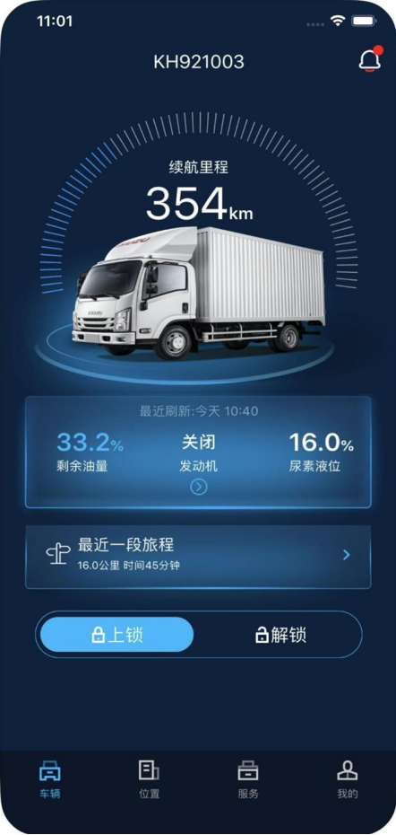 江西五十鈴翼放輕卡搭載的車聯(lián)網(wǎng)系統(tǒng),是江西五十鈴自主開發(fā)的車聯(lián)網(wǎng)平臺(tái),搭載先進(jìn)的車聯(lián)網(wǎng)系統(tǒng)及智能設(shè)備,卡友可以通過手機(jī)上安裝的“江西五十鈴智聯(lián)”app,智能查詢管理車況,分析駕駛行為、優(yōu)化駕駛習(xí)慣;遠(yuǎn)程查詢車輛狀態(tài)信息及診斷,了解車況出行無憂。如果是企業(yè)用戶,可以通過車聯(lián)網(wǎng)實(shí)現(xiàn)人、車、貨倉(cāng)的透明化管理,實(shí)時(shí)掌握車隊(duì)運(yùn)營(yíng)情況,提升車隊(duì)運(yùn)營(yíng)效率,整車運(yùn)營(yíng)效率提升30%。另外,還支持防盜及報(bào)警,發(fā)生事故可第一時(shí)間接通緊急救援,遠(yuǎn)程安排。有了車聯(lián)網(wǎng)系統(tǒng),就如同您坐在監(jiān)控室內(nèi),車輛的運(yùn)行情況一目了然,輕松管理、遠(yuǎn)程指揮車輛。