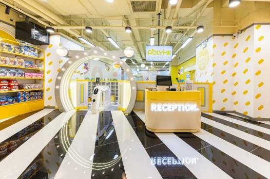 店面依舊是以黃色為主色調(diào),但色調(diào)整體變?yōu)楦尤岷汀⒌惋柡投鹊男尤曙灨牲S,運(yùn)用夢幻而童真的馬卡龍色系,打造輕奢活力的風(fēng)格,搭配出時尚的景點(diǎn),富有想象力且充滿包容性,就像一個溫暖的“家”,驅(qū)散顧客心頭的陰霾。