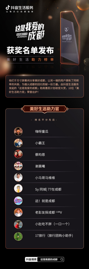 附:「這是我愛(ài)的成都·美好生活助力榜單」獲獎(jiǎng)名單