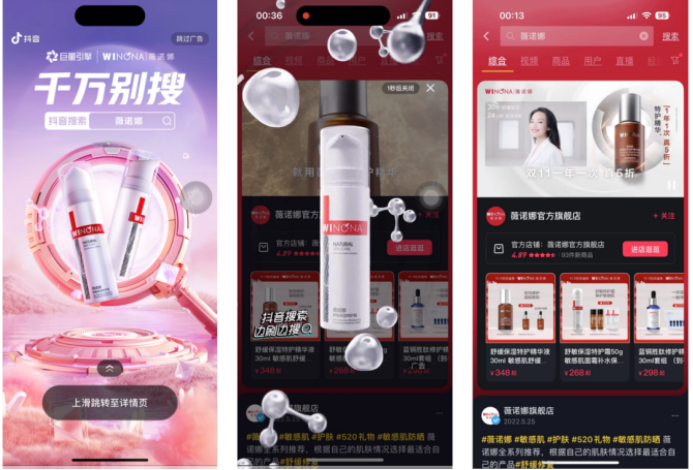 銷售轉(zhuǎn)化始終是品牌的終極目標(biāo),品牌通過電商品專與熱榜、開屏等聯(lián)動(dòng),在直播或非直播兩種場(chǎng)景下,可以實(shí)現(xiàn)品牌信息的多維展示,以及直播間的短鏈引流,促成更快速、直接的轉(zhuǎn)化。