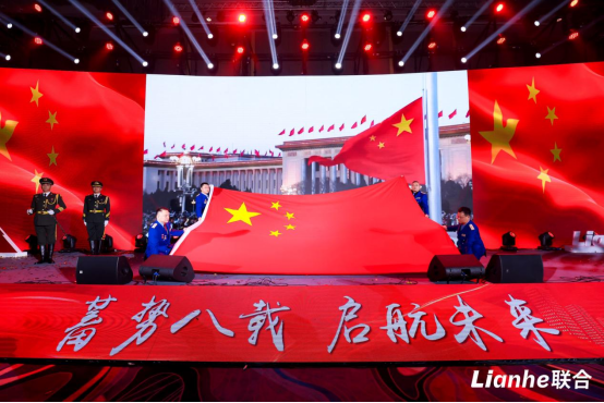 盛典當(dāng)中舉行了授旗和升國旗儀式,曾于2023年3月4日在天安門廣場上空飄揚(yáng)過的國旗、于2023年3月4日在天安門廣場上揮舞過的“天下第一刀”,帶著國家榮譽(yù)在聯(lián)合企業(yè)集團(tuán)八周年慶典上繼續(xù)履行了它們的使命。整場儀式莊嚴(yán)肅穆,現(xiàn)場嘉賓面向鮮紅的國旗一同唱響國歌。激昂嘹亮的國歌,激蕩拳拳報(bào)國之心,聯(lián)合企業(yè)集團(tuán)也將用更堅(jiān)實(shí)堅(jiān)定的步履、更振奮人心的號(hào)召,升華“企業(yè)家精神”,汲取前行的力量,融入經(jīng)濟(jì)社會(huì)發(fā)展大局,使其成為奮進(jìn)新征程的時(shí)代號(hào)角。