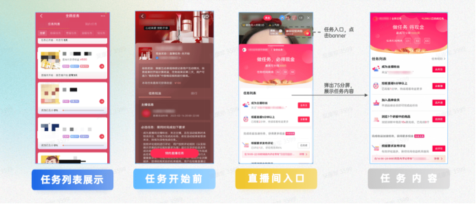 在直播間新品上市場景中,“看播任務(wù)”能夠充分調(diào)動UGC互動,提升直播間熱度和生意,是品牌直播“利器”。品牌可以運用看播任務(wù),以完成任務(wù)獲得現(xiàn)金獎勵的方式,激勵用戶主動停留在直播間內(nèi)進(jìn)行關(guān)注、評論、入會、瀏覽商品等行為,促進(jìn)直播間各項互動指標(biāo)優(yōu)化,助力直播間新品上市聲勢和交易轉(zhuǎn)化。
