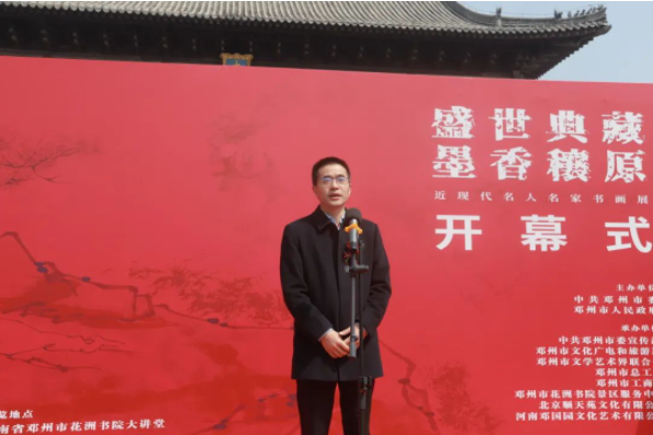 為全面學(xué)習(xí)貫徹黨的二十大精神,弘揚(yáng)傳承中華優(yōu)秀傳統(tǒng)文化,進(jìn)一步繁榮鄧州文藝事業(yè),以優(yōu)秀的作品豐富群眾文化生活,3月30日,“盛世典藏墨香穰原”中國(guó)近現(xiàn)代名人名家書畫展在河南省鄧州市花洲書院開幕。來自北京藝術(shù)界代表,南陽(yáng)市文聯(lián)、美協(xié)、書協(xié)代表,鄧州市相關(guān)文化部門負(fù)責(zé)人及鄧州市廣大書畫愛好者參加了開幕式。