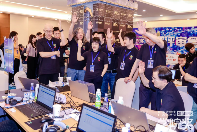 評委老師們秉承對參賽學子認真負責、公平公正的態(tài)度,仔細揣摩每件作品背后的亮點創(chuàng)意,從多個維度審視作品,展開了激烈的“唇槍舌戰(zhàn)”,在反復斟酌中遴選創(chuàng)意最強音。
