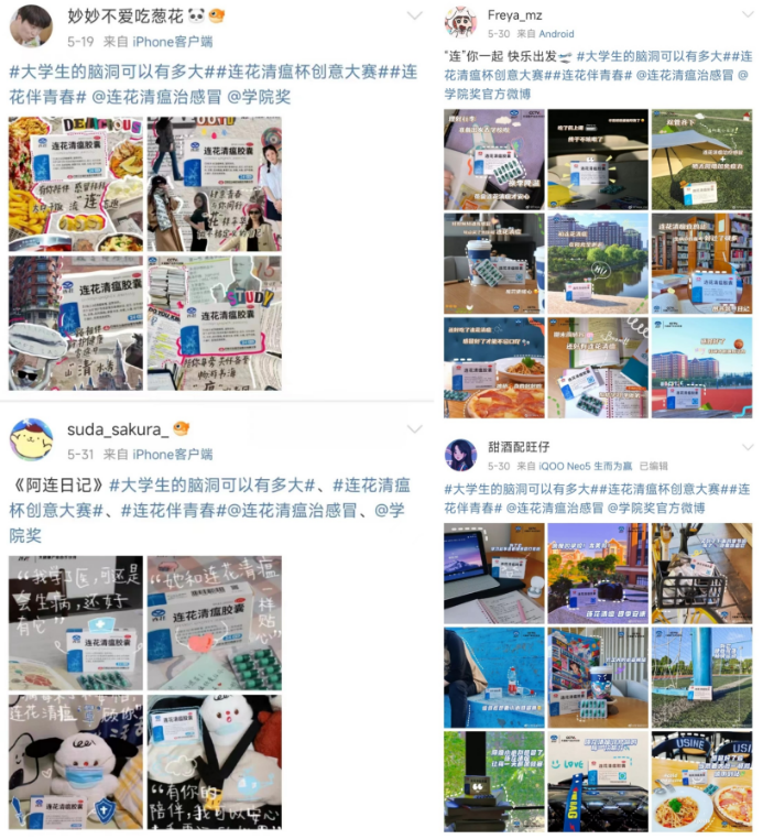 青年一代生生不息,青春力量強勢傳遞。在作品征集期間,參賽學子主動以圖文形式在微博平臺、小紅書平臺上發(fā)布自己的創(chuàng)意作品、創(chuàng)作歷程、創(chuàng)意感悟等相關內容,輸出年輕人的品牌觀念,展現(xiàn)新時代青年昂揚的精神風貌。