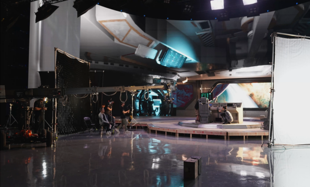它創(chuàng)造了一個沉浸式的拍攝場景,攝影師可以像拍攝真實的物體一樣取景,演員能與虛擬可見場景直接互動,與傳統(tǒng)的空曠綠幕舞臺相比對演員更友好,能使其快速入戲,演繹角色。