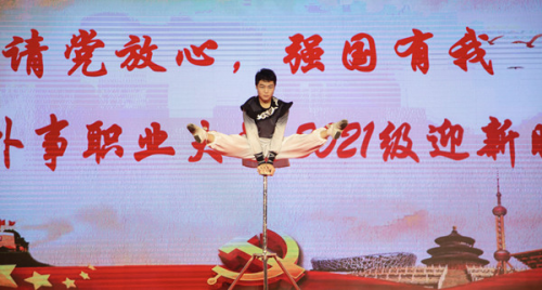 在孫彤宇副校長演講之前,晚會呈現(xiàn)了精彩紛呈的多個節(jié)目。晚會在合唱《大魚》《明天你好》優(yōu)美的歌聲中拉開帷幕,演唱者為五年一貫制2021級新生合唱團,深情的演唱、優(yōu)美的旋律引起了現(xiàn)場觀眾共鳴。配樂詩朗誦《請黨放心 強國有我》讓人們看到祖國新一代對實現(xiàn)強國夢的信心。由我??罩谐藙?wù)專業(yè)學(xué)生帶來的《空乘禮儀展示》在活力四射的音樂中上演,俊男靚女著裝整齊,儀態(tài)大方,展示空乘學(xué)子的青春風(fēng)采。來自山東藝術(shù)學(xué)院的青年歌唱家李章棟傾情演唱《燈火里的中國》,旋律悠揚、緊扣時代,展現(xiàn)了燈火里的繁花似錦和安詳寧靜、奮發(fā)圖強和生生不息。
