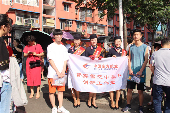 東航武漢公司乘務(wù)員與”愛(ài)心送考“服務(wù)的考生