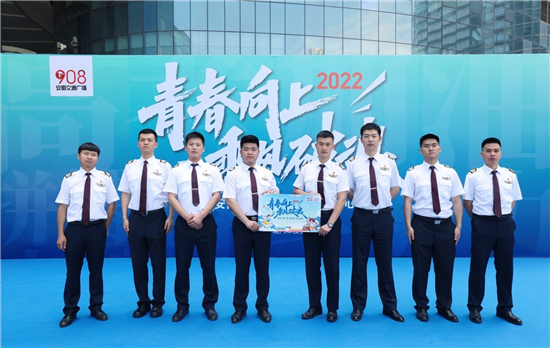 參與2023年”愛(ài)心送考“的東航安徽分公司乘務(wù)員為考生加油