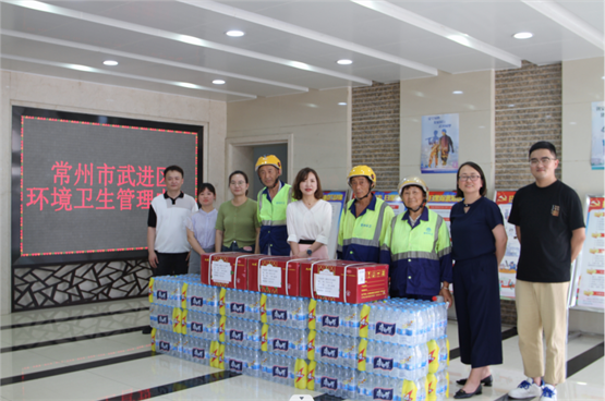 全億健康常州分部總經(jīng)理張云向辛勤工作的環(huán)衛(wèi)工們送上誠摯的問候,再三叮囑夏季高溫天氣,大家要時刻注意身體狀況,做好防暑降溫和防疫工作,感謝他們用勤勞的雙手為我們營造了整潔、舒適的環(huán)境。