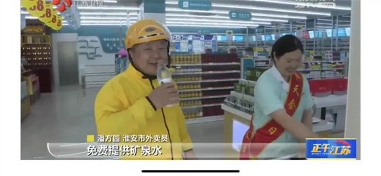“最近天氣太熱了,廣濟醫(yī)藥給我們準備了水跟藿香正氣液,內(nèi)心非常感激?!币晃磺皝眍I(lǐng)水的外賣員由衷地感謝道。