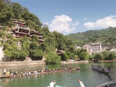 舞陽(yáng)河,青龍洞,綠水青山看鎮(zhèn)遠(yuǎn)。依托古城國(guó)家5A級(jí)旅游景區(qū)等10張國(guó)家級(jí)文化旅游“名片”,鎮(zhèn)遠(yuǎn)縣近年來創(chuàng)新體制機(jī)制,聚焦宜居、宜業(yè)、宜游三個(gè)核心功能,持續(xù)開發(fā)境內(nèi)文化資源,豐富旅游業(yè)態(tài),在推進(jìn)“文化名城”“旅游名城”建設(shè)的同時(shí),縣域經(jīng)濟(jì)不斷增長(zhǎng),與之相關(guān)的文旅企業(yè)借勢(shì)增長(zhǎng),截至目前,涉旅文化旅游經(jīng)營(yíng)單位1600余家,旅游綜合收入89.38億元。
