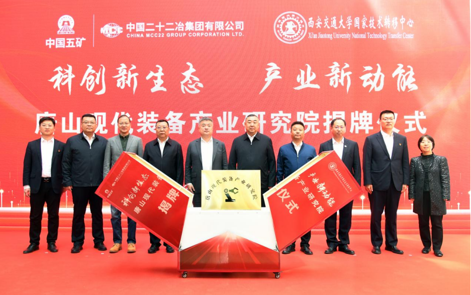 4月18日上午,中國二十二冶集團與西安交通大學(xué)共同聯(lián)合創(chuàng)建的唐山現(xiàn)代裝備產(chǎn)業(yè)研究院揭牌儀式在中國二十二冶中冶重工唐山公司舉行。唐山市工業(yè)和信息化局副局長賀川、高新區(qū)管委會副主任武昌明,西安交通大學(xué)國家技術(shù)轉(zhuǎn)移中心主任王文,中國二十二冶集團有限公司副總經(jīng)理韓冰出席活動,賀川、武昌明致賀詞,賀川、武昌明、王文、韓冰為唐山現(xiàn)代裝備產(chǎn)業(yè)研究院揭牌。中國二十二冶集團有限公司副總工程師慈國強主持會議。