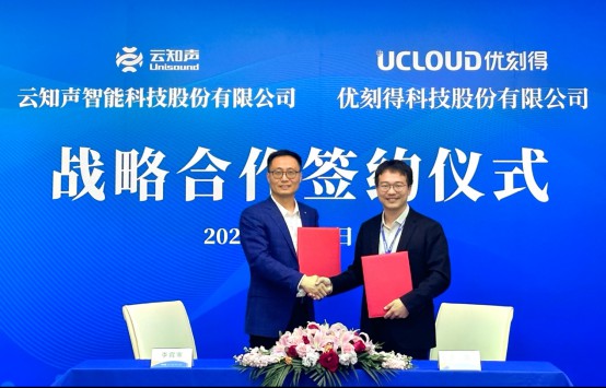 ? (云知聲聯(lián)合創(chuàng)始人、副總裁李霄寒,優(yōu)刻得聯(lián)席CTO王凱簽署戰(zhàn)略合作協(xié)議)