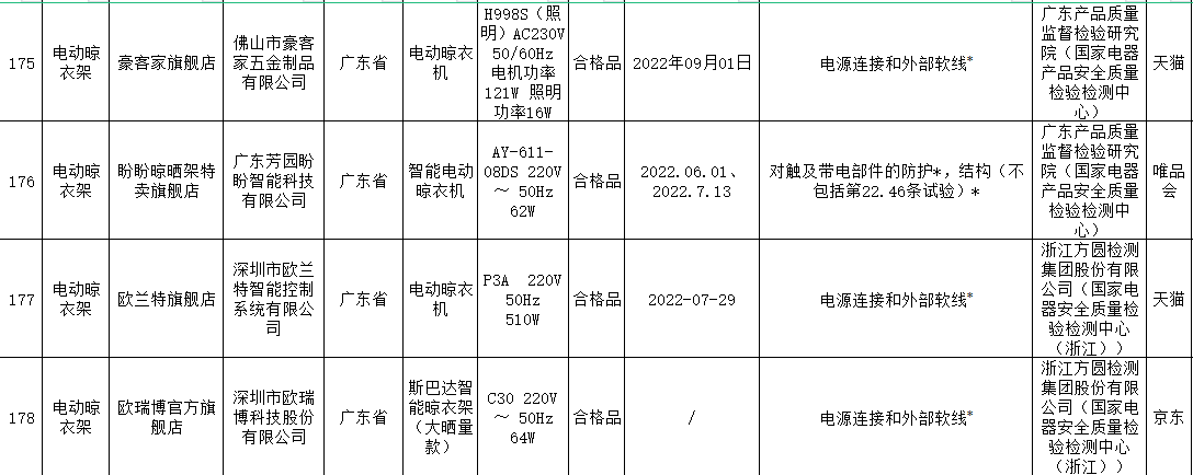 電動晾衣架抽查合格率堪憂,涉及多個品牌