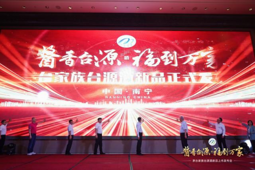 發(fā)布儀式上,出席活動的領導嘉賓共同按下啟動按鈕,一起見證臺源酒新品上市的榮耀時刻。伴隨著臺源酒正式上市發(fā)布,臺源酒從時代的記憶中向著美好走來,開啟了茅臺百元醬香基礎市場的大門。
