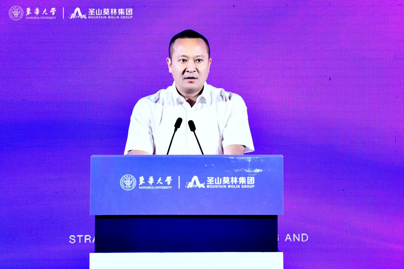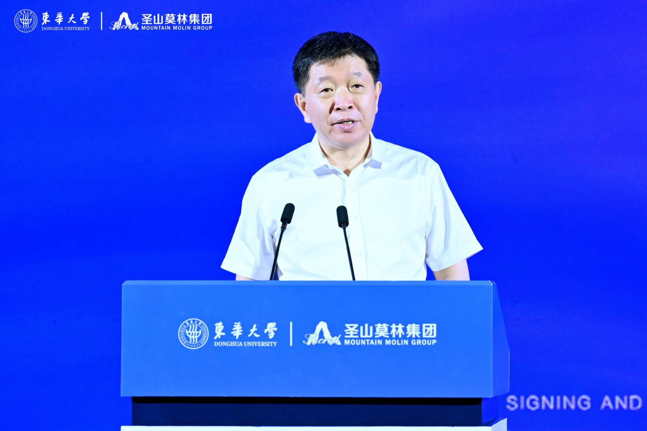 中國(guó)工程院院士、東華大學(xué)校長(zhǎng)俞建勇出席儀式并致辭,他表示,東華大學(xué)是新中國(guó)成立的第一所紡織高等學(xué)府,也是教育部直屬、國(guó)家“211 工程”、國(guó)家“雙一流”建設(shè)高校。五糧液集團(tuán)是“全球規(guī)模最大、生態(tài)環(huán)境最佳”和“最有價(jià)值品牌”特大型現(xiàn)代企業(yè),圣山莫林集團(tuán)作為五糧液集團(tuán)多元板塊子集團(tuán),深耕紡織服裝行業(yè),積極服務(wù)地方經(jīng)濟(jì)發(fā)展。此次東華大學(xué)與圣山莫林集團(tuán)合作設(shè)立聯(lián)合創(chuàng)新中心,是貫徹落實(shí)黨的二十大對(duì)教育、科技、人才工作統(tǒng)籌部署的重要舉措,是雙方深化科教融合、產(chǎn)教融合,搶抓機(jī)遇、共謀發(fā)展的新思路與新探索,是雙方“情相融”“力相聚”,互惠共贏、共謀發(fā)展的新起點(diǎn)。希望雙方以共建“東華大學(xué)-圣山莫林集團(tuán)聯(lián)合創(chuàng)新中心”為契機(jī),充分發(fā)揮東華大學(xué)在紡織、材料等前沿領(lǐng)域的研發(fā)和創(chuàng)新優(yōu)勢(shì)以及圣山莫林集團(tuán)的市場(chǎng)和資金優(yōu)勢(shì),在時(shí)尚設(shè)計(jì)、面料開(kāi)發(fā)、服裝研發(fā)、成果轉(zhuǎn)化以及畢業(yè)生就業(yè)等方面開(kāi)展更高層次的交流與合作,合力譜寫校企合作、產(chǎn)教融合的新篇章。